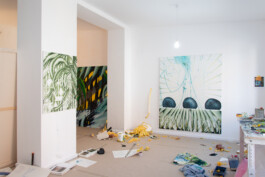 Naomi Pietros' large-format paintings and drawings oscillate between references to reality and fiction, between narrative echoes and polychrome abstractions. In her simultaneously research-based and process-oriented practice, she examines the materiality of color, painterly means of expression and the reflexive potential in dealing with European art history. In particular, she refers to the repetitive compositional patterns of the Baroque, Antiquity and the exoticizing imagery of Fauvism. Her focus is on aspects of being in-between and the discrepancy between self-attribution and attribution to others, which she presents as fluid and fragmentary. What does identity mean when ambiguity is in the foreground as a central, yet fluid characteristic?